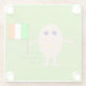This awesome glass coaster features a funny cartoon of an egg with arms and legs. The egg has arms and legs and a small crack in its head exposing the white inside. It has blue eyes with a black pupil and a big smile where the yolk of the egg can be seen. The eggshell looks rough. This patriotic Irish egg proudly holds its flag and there is green text below the flag that reads "it's all about the craic". This fun design is great for Saint Patricks Day or for proud Irish men and women.