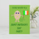 This awesome Saint Patrick's Day party invitation features a funny cartoon of an egg with arms and legs. The egg has arms and legs and a small crack in its head exposing the white inside. It has blue eyes with a black pupil and a big smile where the yolk of the egg can be seen. The eggshell looks rough. This patriotic Irish egg proudly holds its flag and there is green text below the flag that reads "it's all about the craic". This fun design is great for Saint Patricks Day or for proud Irish men and women. There is customizable text on the back so you can personalize this invitation.