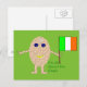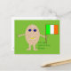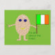 This fun postcard features a funny cartoon of an egg with arms and legs. The egg has arms and legs and a small crack in its head exposing the white inside. It has blue eyes with a black pupil and a big smile where the yolk of the egg can be seen. The eggshell looks rough. This patriotic Irish egg proudly holds its flag and there is green text below the flag that reads "it's all about the craic". This fun design is great for Saint Patricks Day or for proud Irish men and women.