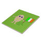 This awesome tile features a funny cartoon of an egg with arms and legs. The egg has arms and legs and a small crack in its head exposing the white inside. It has blue eyes with a black pupil and a big smile where the yolk of the egg can be seen. The eggshell looks rough. This patriotic Irish egg proudly holds its flag and there is green text below the flag that reads "it's all about the craic". This fun design is great for Saint Patricks Day or for proud Irish men and women.
