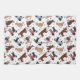 Patriotic labradoodles dressed in red white and blue with stars, stripes and dog bones on a white background.