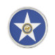 Crafted to celebrate Houston's unique identity, this lapel pin prominently displays the flag of Houston. The design features a navy blue field with a single white star in the center, symbolizing the Lone Star State and Houston's significance within Texas.