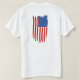 The flag in on both sides of the t-short. It is grunge and modern in red white and blue.
