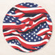 These paper coasters are shown in a patriotic July 4th stars and stripes flag print design.