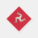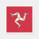 These paper napkins prominently display the flag of the Isle of Man, showcasing its distinctive triskelion symbol on a bold red field. The triskelion, with its three armored legs joined at the thigh, symbolizes resilience and determination, reflecting the island's motto "Quocunque Jeceris Stabit," which translates to "Whichever way you throw it, it will stand."