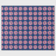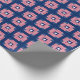 This patriotic wrapping paper is printed with a repeating pattern of the American Flag arranged in quilt like squares and a white star at the center of each on a blue background.