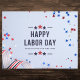 Celebrate Labor Day with this patriotic postcard featuring red, white, and blue stars. The bold message 'Happy Labor Day' is framed by festive details, including a ribbon of stars and stripes, making it perfect for thanking someone for their hard work. Ideal for spreading appreciation and sending warm holiday wishes, this postcard is a great way to acknowledge the dedication and efforts of workers across the country.