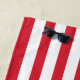 Bold red and white vertical stripes with a navy blue personalized monogram name banner create a striking patriotic beach towel. The classic American color palette is perfect for Fourth of July cookouts, lake days, and summer pool parties. All text and colors are fully customizable to add any name. A sharp and festive summer accessory the whole family will love.