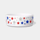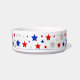 A festive ceramic dog bowl wrapped in bright red, blue, and silver stars. A cheerful, patriotic design that adds a fun pop of color to your pet’s daily routine.
