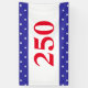 In celebration of the USA's 250th anniversary, 250 appear in red letters. Can be customized with desired text. A blue background with white stars is above and below a white stripe.