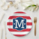 Patriotic Red White Blue Custom Monogram Initial Paper Plates
