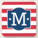 Patriotic Red White Blue Monogram Custom Beverage Coaster