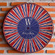 Distressed Patriotic sunburst dartboard in shades of red, warm white, and blue, personalizable with monogram, name, and established date.