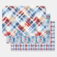 Patriotic Red White Blue Plaid Complementary Set Wrapping Paper Sheets