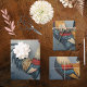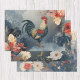 These wrapping paper sheets are variations of red, white, blue and gold roosters against beautiful, stylized flowers, leaves, and botanical elements. Watercolor paint strokes and gold dots add color and interest.