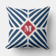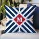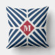 Patriotic Red White Blue Stripes Monogram Initial Throw Pillow