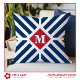 Freshen up your indoor or outdoor living spaces with this patriotic red, white, and blue pillow featuring Navy diagonal stripes, a red center diamond, and a customizable initial. This design is minimalistic and modern, and it will make a great addition to your living room, bedroom, porch, or patio, or an Independence Day or July 4th celebration. Modify the initial to fit your needs.