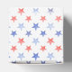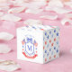 This patriotic bridal shower favor box design features a watercolor crest with a light red white and blue patriotic crest with American flags and a blue bow. The sides have a red and white stars pattern. You can personalize with your monogram and name.