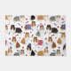 Patriotic rough collies dressed in red, white and blue with stars and stripes with dog bone and star background.