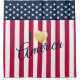 Patriotic Saying I love America US Flag shower curtain. White stars on a navy blue background atop red and white candy stripes. Classic Americana for the bathroom, kitchen, decor and all American lifestyle. Patriotic American stars and stripes decor and lifestyle essentials exclusive to Amore Amore on Zazzle.