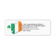 Patriotic IRISH FLAG Return Address Labels, showing combined design of map outline and flag of THE REPUBLIC OF IRELAND plus a shamrock motif. Simply replace the CUSTOMIZABLE TEXT with your address details or text of your choice. Makes a great finishing touch to all your cards and letters. Matching items available.