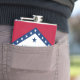 This flask isn’t just about keeping your beverages handy; it’s about showcasing your Arkansas spirit. The design prominently displays the Arkansas flag, featuring its iconic diamond and star emblem on a vibrant red, white, and blue background, celebrating the state’s heritage and pride.