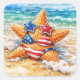Patriotic Starfish in Beach Sand Square Sticker