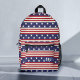 This cool backpack design has a patriotic stars-and-stripes pattern inspired by the American flag. The repeating design is made in shades of red, off-white and blue. Include your custom monogram on the pocket. Celebrate your love of the USA with these bags that are perfect to carry for the 4th of July, Labor Day, and all days when you want to celebrate the United States of America. Find more backpacks and other custom products in the FancyCelebration store: https://www.zazzle.com/store/fancycelebration