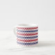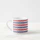 Ceramic espresso mug is shown with a festive July 4th patriotic stars and stripes print.