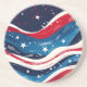 This sandstone coaster is shown in a patriotic July 4th stars and stripes mod print design.