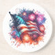 This sandstone coaster is shown in a patriotic July 4th stars and stripes flag print design.