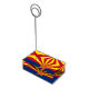 Crafted with meticulous attention to detail, this table card holder is more than just a practical accessory; it’s a celebration of Arizona heritage and cultural pride. The design prominently features the iconic copper star and rays of red and yellow on a field of blue, representing the state’s rich history and unique identity.