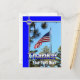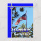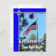 A magnificent sun lit flag viewed through the trees against blue sky postcard for thank you to our troops. Template provided for additional text. Could add special name or maybe who or where it's from. See "from Idaho." Original design by Anura Design Studio 2010.