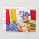 A photograph of a fully loaded cheeseburger at a patriotic themed cookout supplies the perfect theme for your next cookout or BBQ invitation. Use these unique postcards to invite your friends to your Memorial Day, July 4th, Independence Day or Labor Day barbecue party.