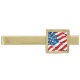 Tie bar shown in a gold plate color with a patriotic USA Flag print.