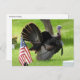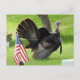 Patriotic Male Turkey displaying his tail feathers in front of an American Flag