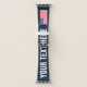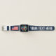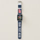 Make your own patriotic Apple watch band with American flag. Cool smartwatch accessories with custom name, funny quote, slogan, logo or monogram initial letters. Customizable solid background color. Trendy Birthday or Christmas Holiday gift ideas for techie friends and family. Make your own fun watch strap print for women and men. Unique presents for him and her. Get one for mom, girlfriend, sister, daughter, best friend, co worker, cousin, mother, grandma, wife, dad, brother, husband, father, grandpa, son, bride, teenager, teen, mother, stepdaughter, boyfriend, girlfriend, sailor, teacher, nurse etc. Available for 38 and 42 mm case sizes. Big bold typography template with country flag of America. USA pride. Navy blue and white colors. Also nice for 4th of July.
