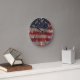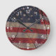Patriotic US Flag Segment Over Rustic Cracked Wood Round Clock
