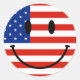 Patriotic US Flag With Smiling Face Classic Round Sticker