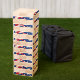 A super fun game for your next patriotic BBQ, tailgating, 4th of July party - this jumbo topple tower game features a USA flag inspired graphic and your custom text. Add your family name, team name, slogan, or really any text. Easily change the text and background color. Perfect for all your backyard parties, everyday backyard fun, businesses, restaurants, veteran organizations and more.