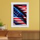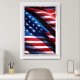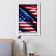 Framed poster is shown with a patriotic photo print of a USA flag.