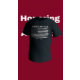My 11 yo wore adult XL (5’7” 165#). The 8yo is small framed. She wore adult small and tied it in the back. Grandma wore adult large with long sleeve shirt underneath. Tall girl adult medium. Dark haired male adult large. Good quality dark Heather gray, Gildan brand shirt. -it was next up from basic choice and cost about $20 per shirt. Not too thick or thin. Washed and dried well, no major shrinkage. Not see-through. Can wear a bra under it fine. Screen print is just as shown and well done, front and back.