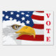 Yard sign shown with a patriotic vote USA flag and eagle print.
