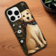 This whimsical and aesthetic design features an adorably cute yellow labrador retriever dog wearing blue and red bandanas decorated with stars, creating a fun and festive patriotic labrador theme. The yellow lab sits in front of a rustic wooden fence where colorful wildflowers grow, adding a soft, natural backdrop that enhances the charm and warmth of the scene. The gentle tones of the lab’s fur contrast beautifully with the bold red, white, and blue of the bandanas, drawing attention to the playful yet heartfelt design. This cute patriotic dog art is ideal for any dog fan, animal lover, or pet owner who enjoys celebrating their furry friend in style. The case also includes a customizable monogram template, making it a unique and personal gift option. Whether you're drawn to the aesthetic yellow lab dog design, love expressive pet design, or simply want to showcase your favorite breed with flair, this iPhone case offers the perfect blend of charm, personalization, and Labrador love.