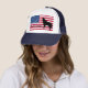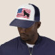 Hat shown in Navy and White with a patriotic flag and Yellowstone Wolf art print.