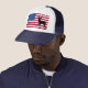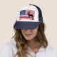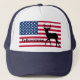 Hat shown in Navy and White with a patriotic flag and Yellowstone Deer art print.