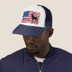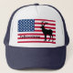Hat shown in Navy and White with a patriotic flag and Yellowstone Elk art print.