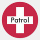 Red sticker with white cross. "Patrol" is in white cross.
