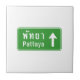 Pattaya Ahead ⚠ Thai Highway Traffic Sign ⚠ Ceramic Tile