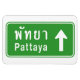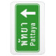 Funny Pattaya, Thailand Ahead bilingual Thai highway sign written in Thai and English Language Scripts.